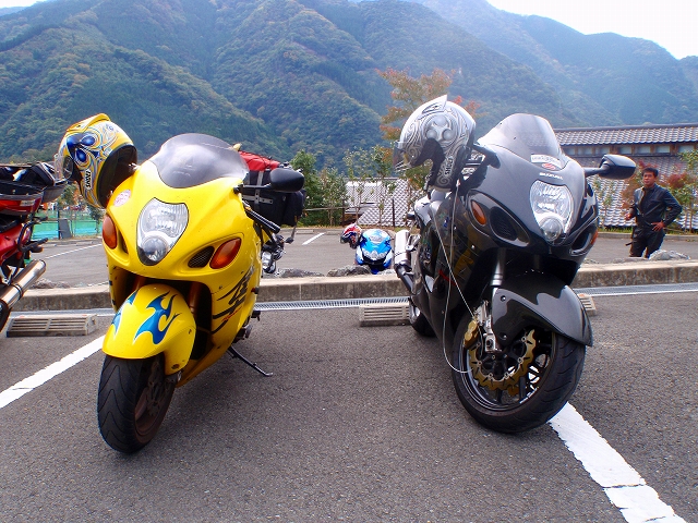 | 宮崎から参加のMBさん、宮崎は雨だったようで四輪でのご参加となりました。 で、ここでお別れです。お疲れ様でした。 しかし、今日は良い天気です。 朝晩は冷え込みますが、日中は30℃近くまで気温があがりました。 |