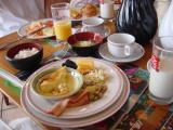 | 本日も曇だが散水中 | 朝食その1 | 朝食その2 | 朝食その3 |