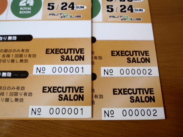 | 4/18 チケットが届きました。今年も嫁と二人エグゼクティブルームです♪ 1枚のはずの専用エリア駐車券、なぜか今年は2枚・・・? |