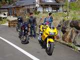 10:01 緑川PAに集合した3人(3台?)です。 この後、人吉IC〜フルーティーロード(注)〜湯前と走りました。 (注)隼小僧が初めて当時のすかたん組メンバーとご一緒させてもらった”思ひ出”の路です。 |
