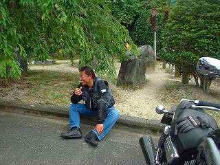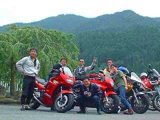 思い出は、熊本の産山を駆けるたくましいライダー達との出会い、四国カルストの頂き、トンカツを食うために鹿児島まで九州山地の道なき道を走り、ふらりと山陰へ芸北越え800km走行、一房山麓の蕎麦、阿蘇箱石峠の蕎麦、一人待った人吉フルーティーロードの入り口、etc.と、とてもとても重いで〜・・・・(笑って!) ・・・と、人が感傷にふけっているのに、組長はん、R1100RS−am氏の白車体青ジャケット問題について議事をおこし、R1100GS氏のGSのインジェクションあたりからのオイル漏れについて各論を展開し。相変わらずせわしない行動。ここでVMAX氏が問題提起、R1100RS−am氏のリアタイアはニュートラルでクルクル回るのに組長はんのR1100Rはブレーキが引きずっているように動きが渋い、以前から気になっていたと言う。