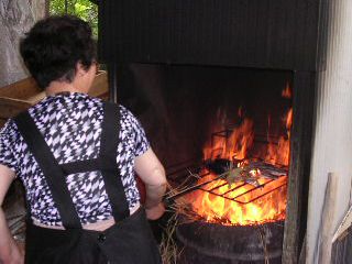 | ん?いつものたたきを作る場所にドラム缶がない。 聞けば、外で燃やせなくなったそう。 じゃ、どこで? ありましたよー、店の奥にドラム缶!みんなで見学にお邪魔する。 あのおばあちゃんが、見事な手さばきでたたきを作ってくれる。 みんなで拍手喝采!!(^O^)XJR1300社長は、たたきを7つも買ってました。 |