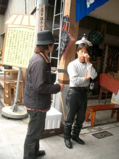 | さて、本日メイン?の鰹たたき見学ツアーに出掛ける。 女将さんから、「先週まで鰹が捕れなくて、値段が今の十倍だったんですよ。」 と聞いて、ラッキーと思う。一匹1万5千円じゃ昨日の夕食に出てなかったかもね(^_^)v おっ、突然サイレンが鳴り響く。「あれは鰹が捕れたという合図です。」と女将さん。 よっしゃー、たたきを買いに行こう。 |
