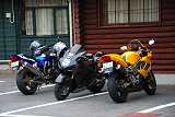 | まっちゃん・・・本日はこのポーズが多かったね。(笑) 清らかな水で心を清めてください。 今日の三人は気が合わない?ボキだけが反対向き。。。 でも、組長はいつも・どこでも出発する向きに停めるんだよぉ〜。。。 |